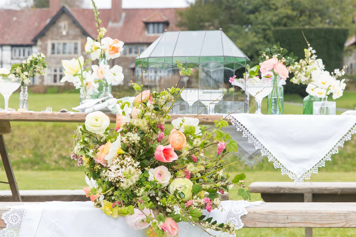 As the last of the leaves floats down to earth and winter's chill permeates the air, we felt the urge to enjoy an injection of glorious green and relive our Spring themed shoot from earlier in the year. Making full use of the beautiful backdrop of the Coach House and with Icicle the peacock revelling in his debut, the wonderful Blue Fizz organised an array of stand out suppliers to descend on Coombe Trenchard, the results of which were then featured in Wed Magazine (issue 28).
